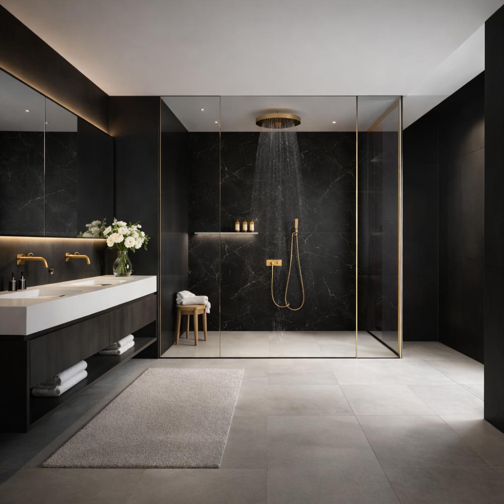 Water itself becomes part of the experience. A rainfall shower — where droplets fall softly like spring rain — transforms a simple routine into a moment of restoration. Paired with warm, flattering lighting and subtle herbal or citrus notes, the atmosphere becomes immersive rather than purely functional.